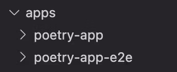 Now you should notice that under the apps folder, there are 2 folders generated: peotry-app and poetry-app-e2e: